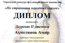 Поздравляем Ахметянова Амира (Преп. Груич М. М.), ставшего Лауреатом 2 степени городского конкурса-фестиваля юных пианистов "По страницам народный сказок"! Так держать!
