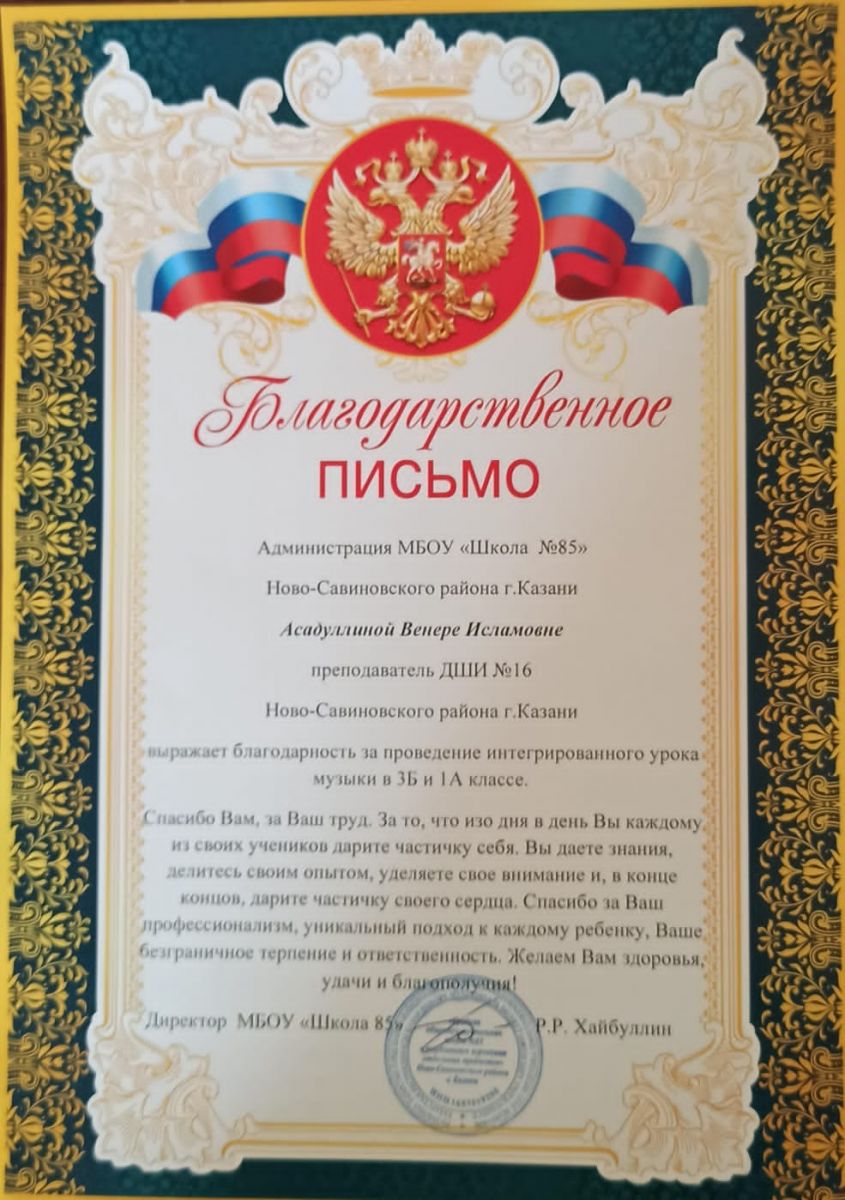 Асадуллмна В. И. - Благ. письмо МБОУ "Школа № 85".jpg