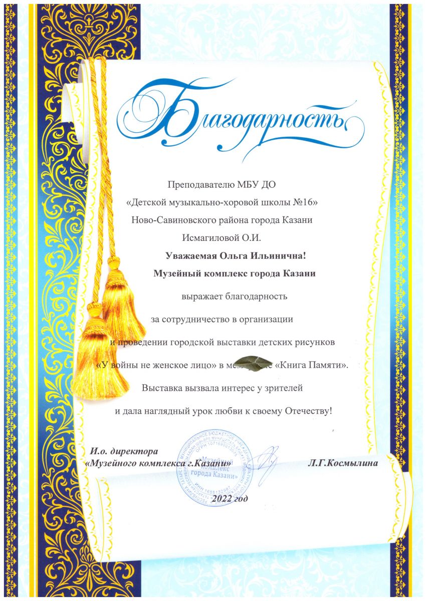Исмагилова О. И. - Благодарность музейного комплекса г. Казани.jpeg