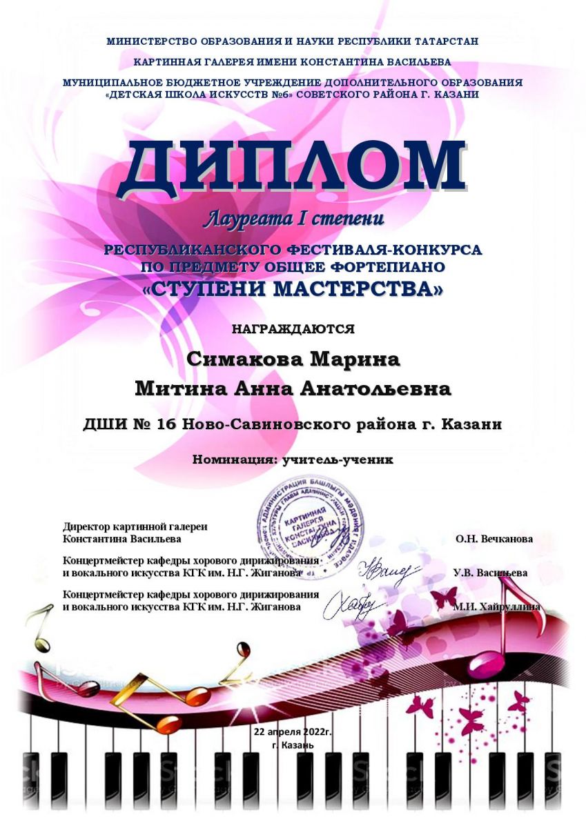 Митина А. А., Симакова М. - Лауреат I степени конкурса "Ступени мастерства".jpg
