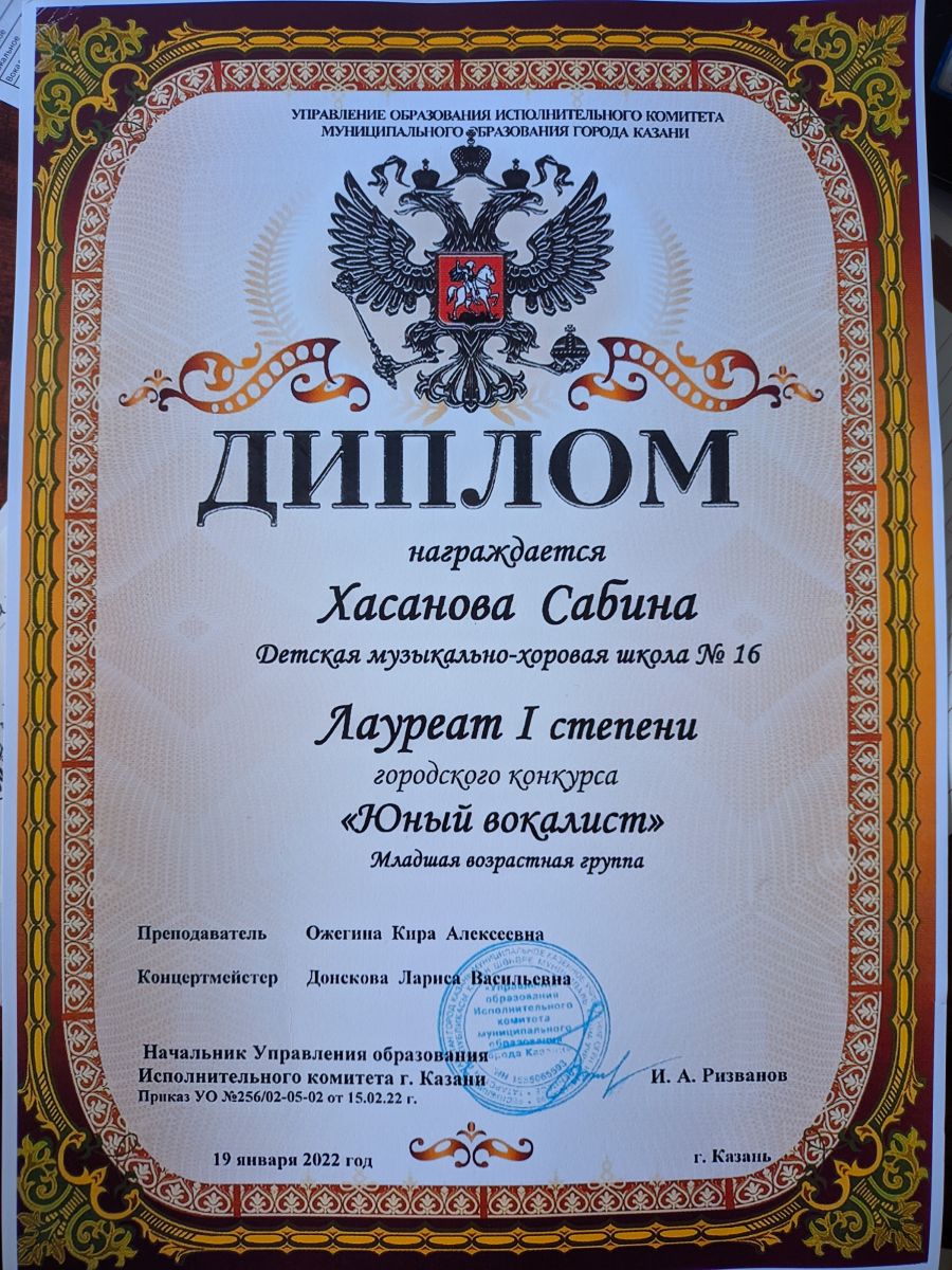 Хасанова С.- Лауреат I степени конкурса "Юный вокалист".jpg