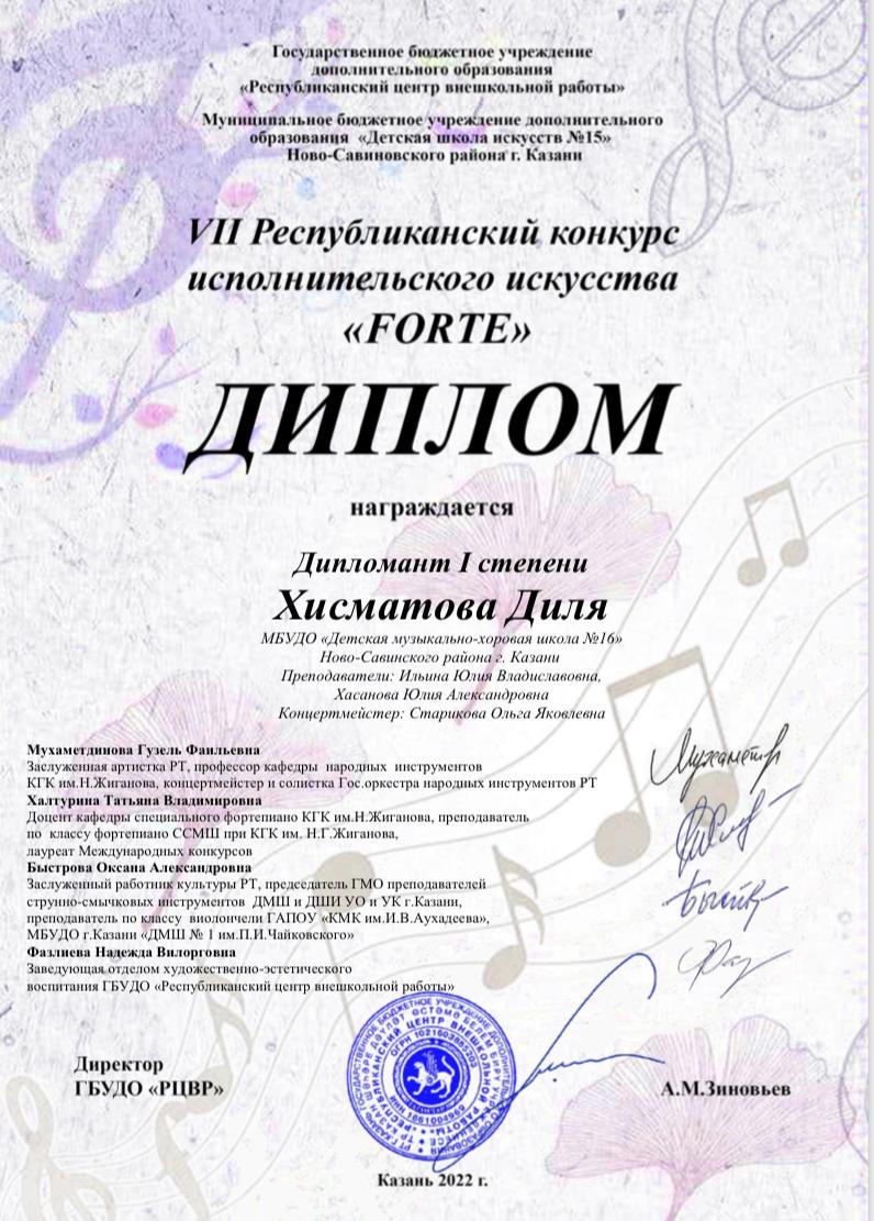 Хисматова Д. - Дипломант I степени конкурса "Forte".jpg