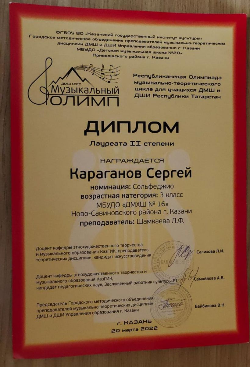 Караганов С.- Лауреат II степени олимпиады "Музыкальный олимп".jpg