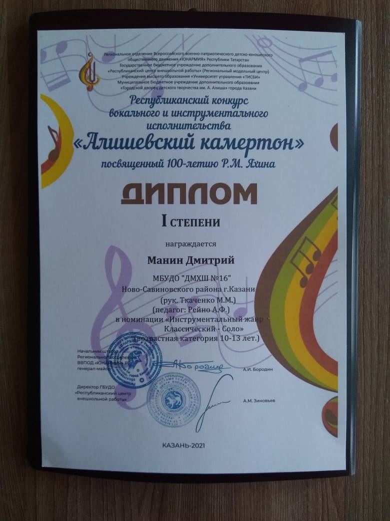Манин. Д. - Диплом I степени конкурса "Алишевский камертон".jpg