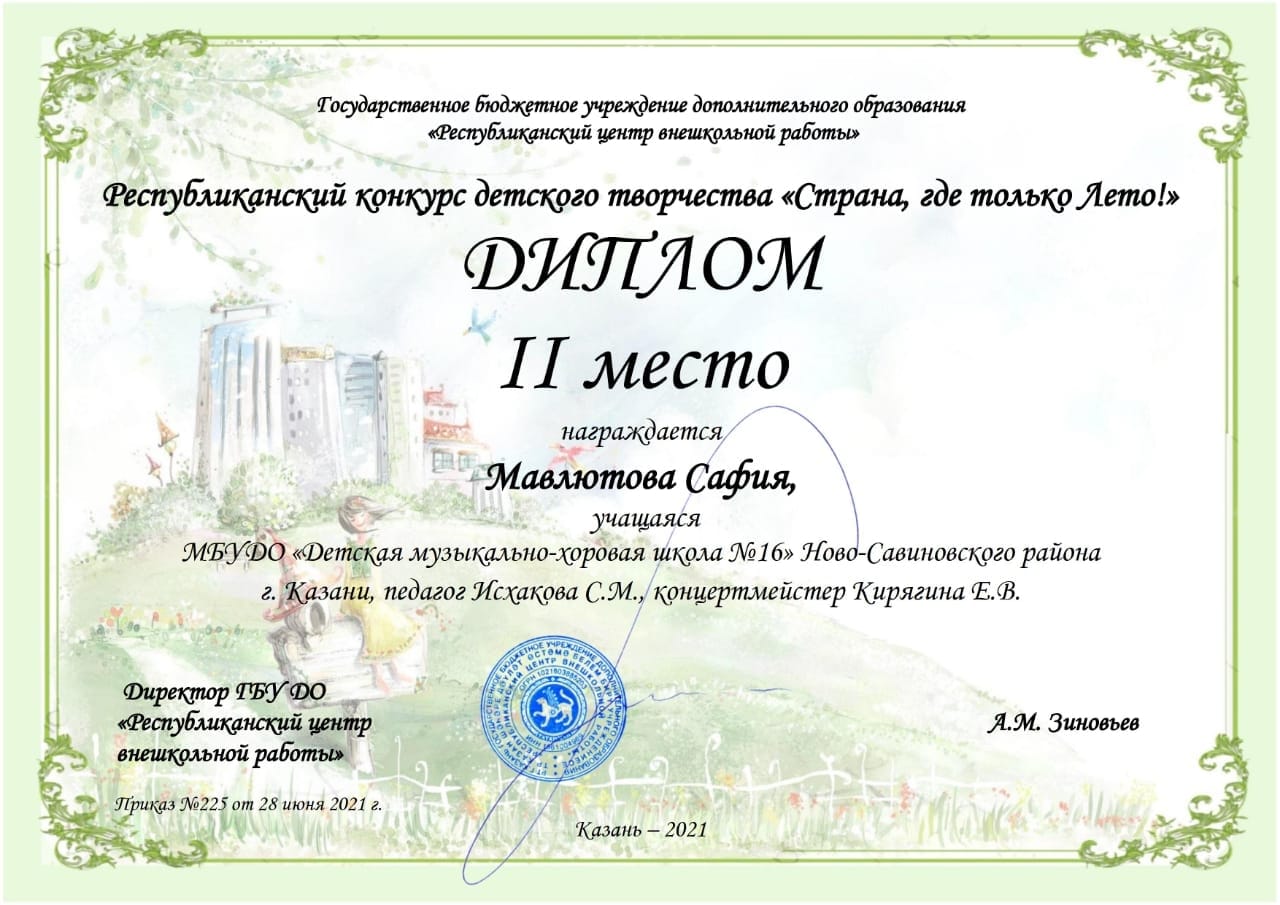 Мавлютова С. - II место конкурса "Страна, где только лето".jpg