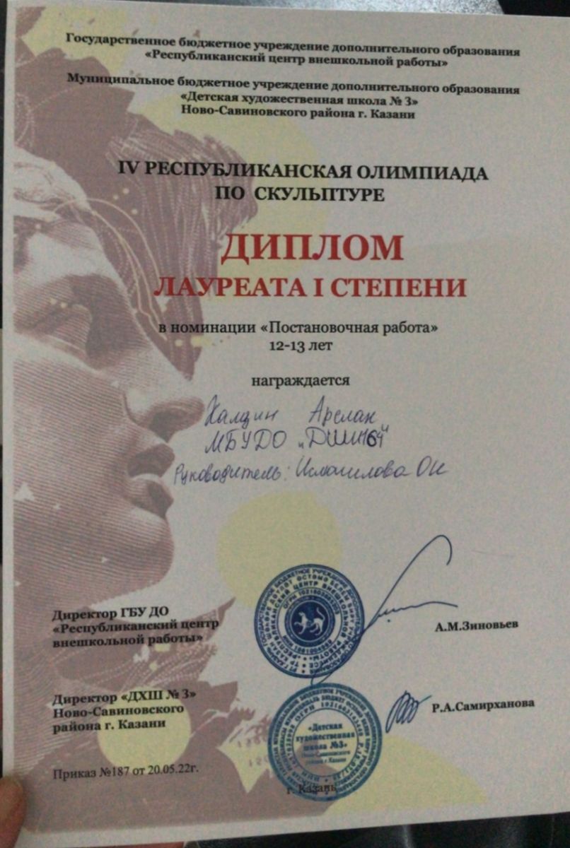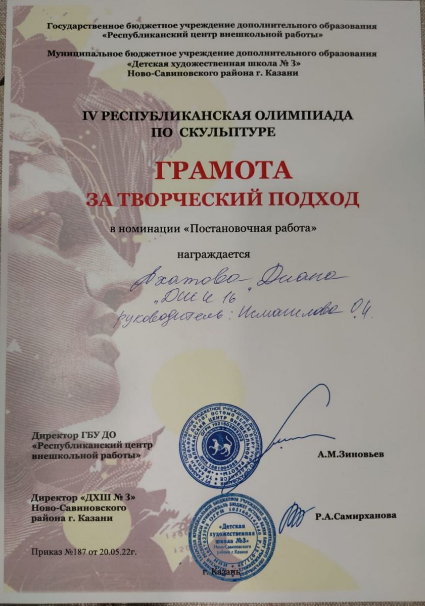 Ахатова Д. - Грамота олимпиады по скульптуре.jpg