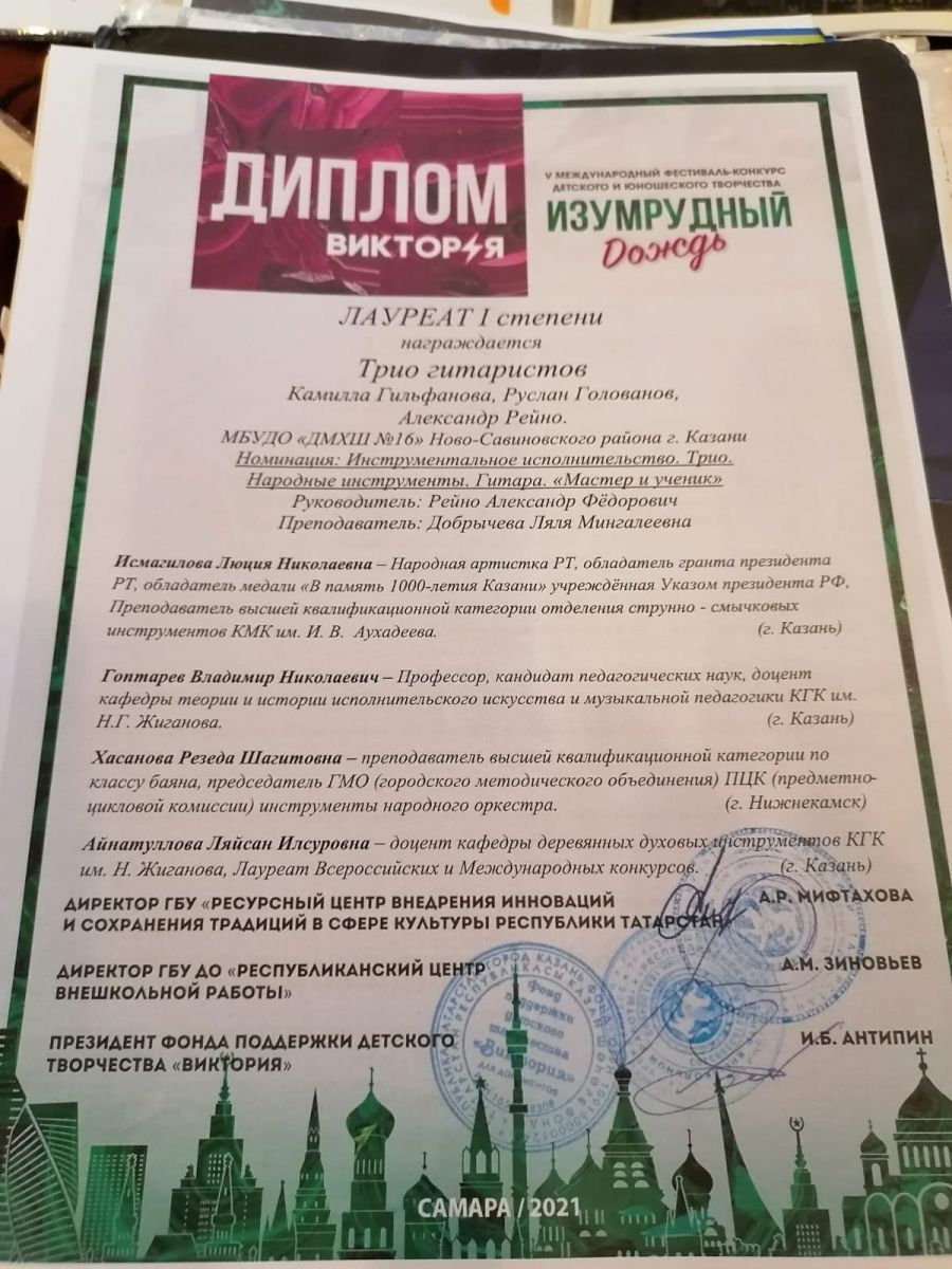 Трио гитаристов - Лауреат I степени конкурса "Изумрудный дождь".jpg