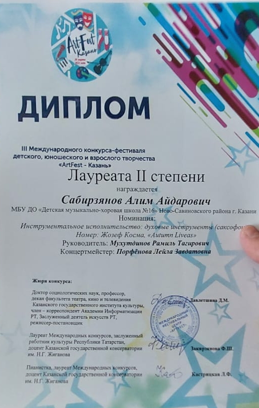 Сабирзянов А. - Лауреат II степени конкурса "Artfest-Казань".jpg