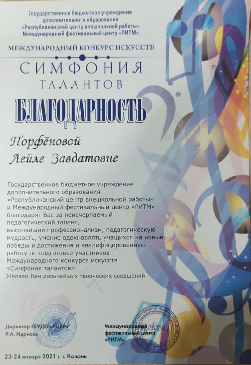 9. Порфенова Л. З. - Благодарность конкурса "Симфония талантов".jpg
