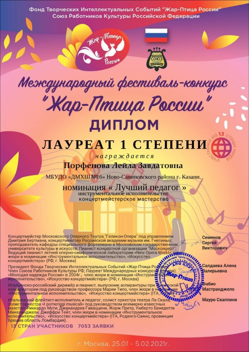 20. Порфенова Л. З. - Лауреат I степени конкурса "Жар-Птица России".jpg