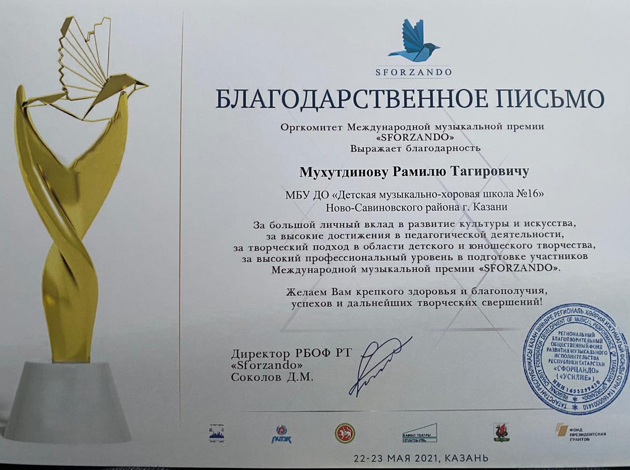 39. Мухутдинов Р. Т. - Благ. письмо музыкальной премии "SFORZANDO".jpg