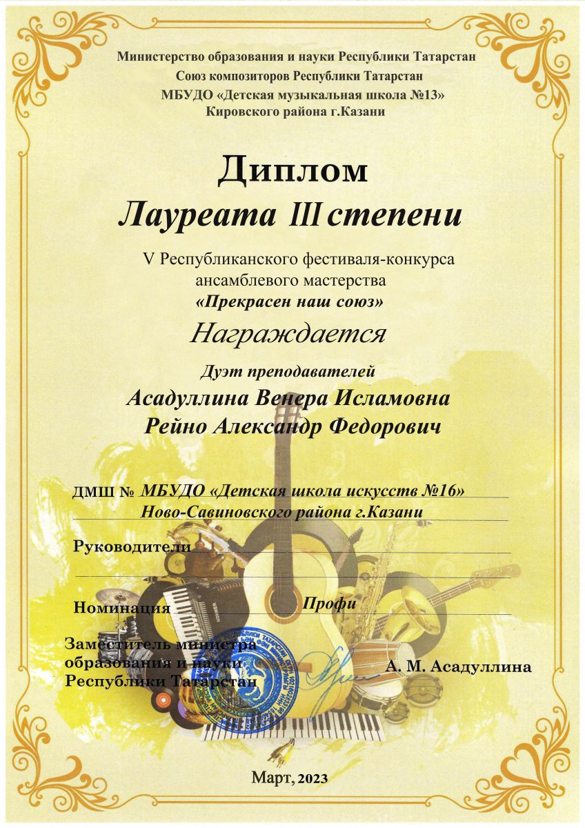 Дуэт Асадуллина В.И. - Рейно А.Ф. - лауреат 3 степени " Прекрасен наш союз"