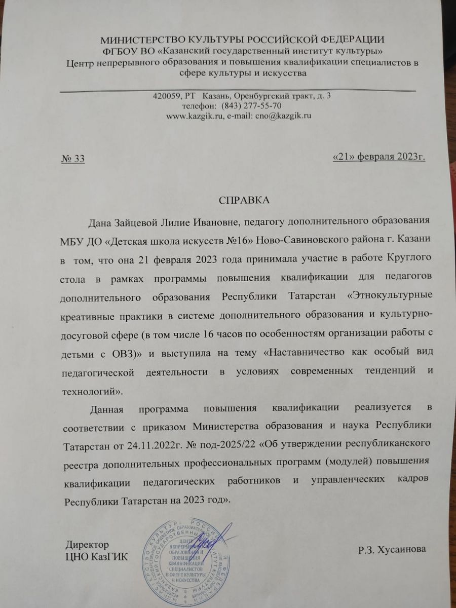 Зайцева Л.И. - Справка об участии работе Круглого стола в рамках программы повышения квалификации