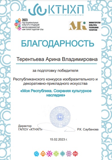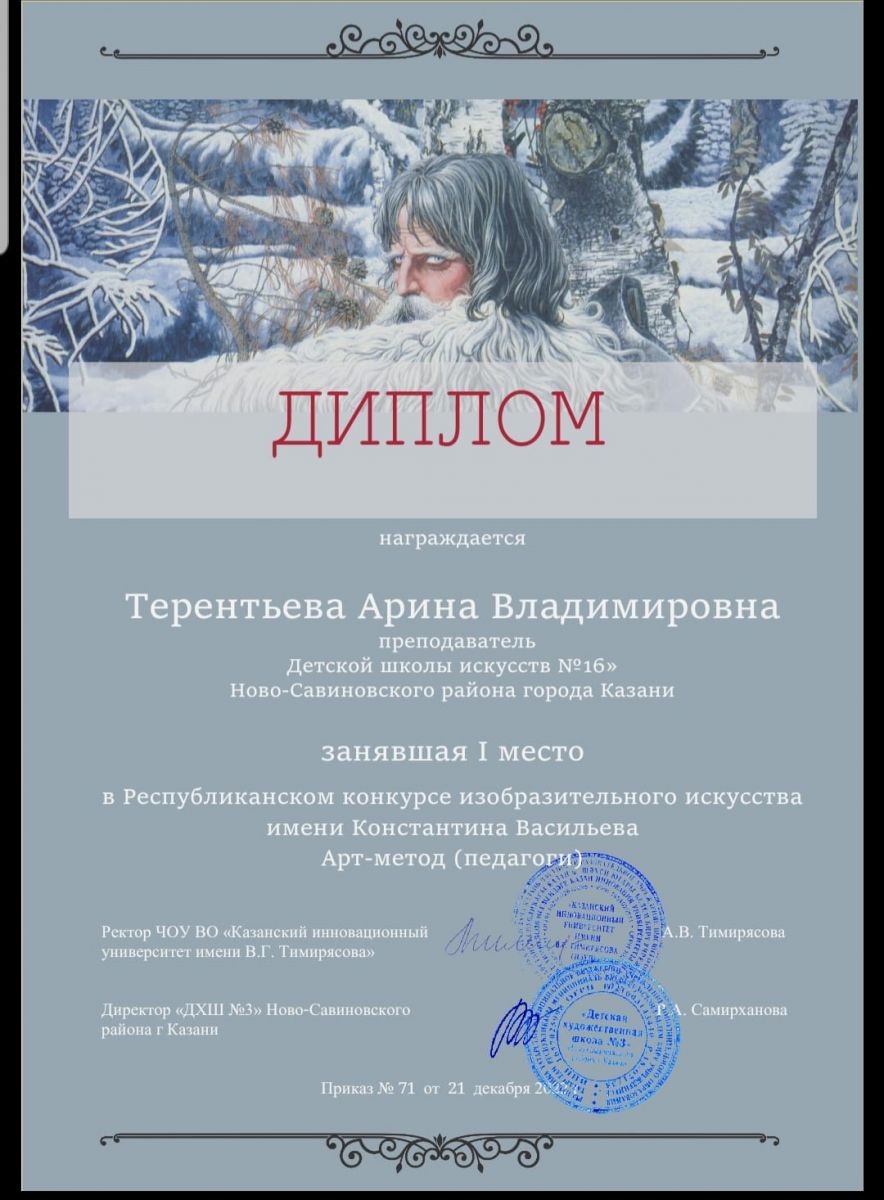 Терентьева А.В. - диплом 1 место Конкурс им.Васильева Арт-метод