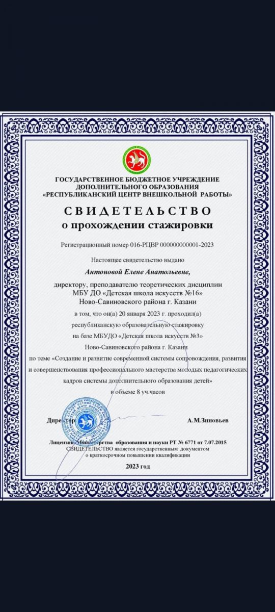 Антонова Е.А. - Свидетельство о прохождении стажировки в РЦВР