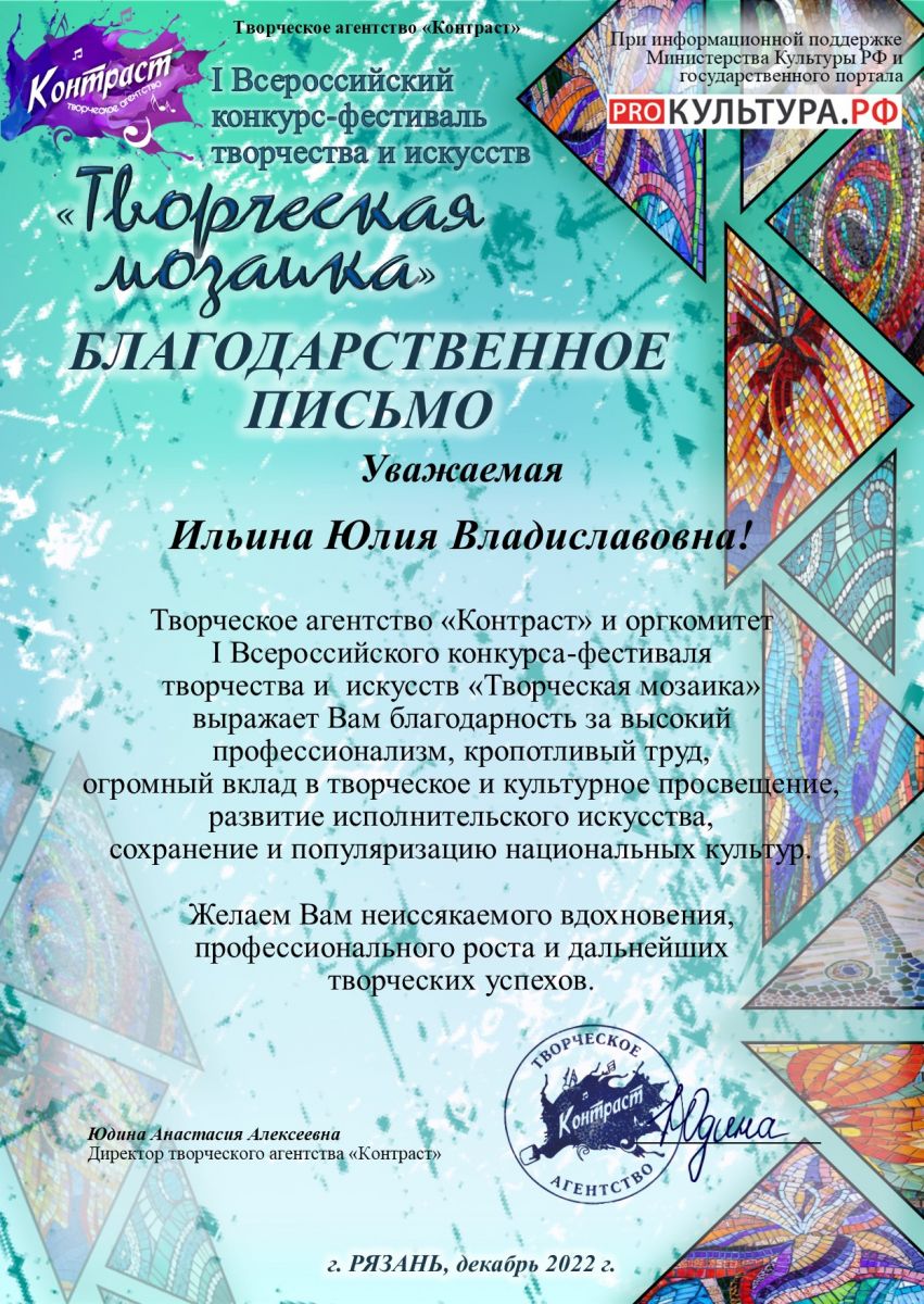 Ильина Ю.В. - Благодарность "Творческая мозаика".jpeg