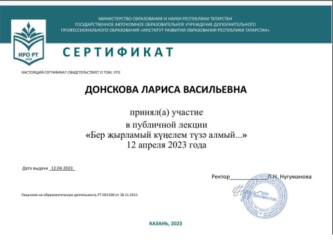 Донскова Л.В. - сертификат об участии в публичной лекции