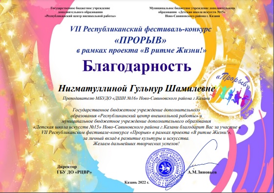 Нигматуллина Г.Ш. - Благодарность фестиваля-конкурса "Прорыв".jpg