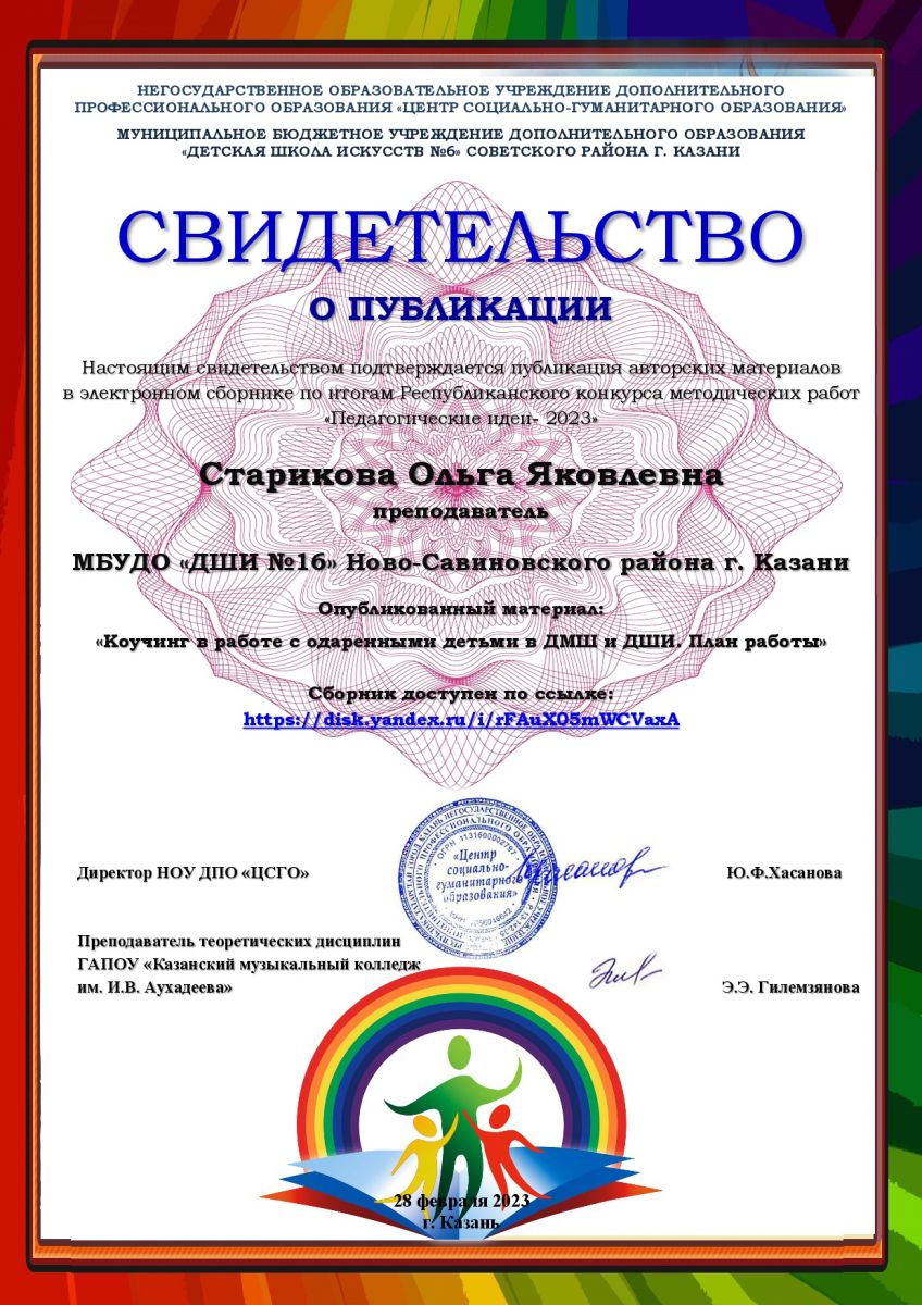 Старикова Ольга Яковлевна- свидетельство о публикации в сборике "Педагогические идеи".jpg