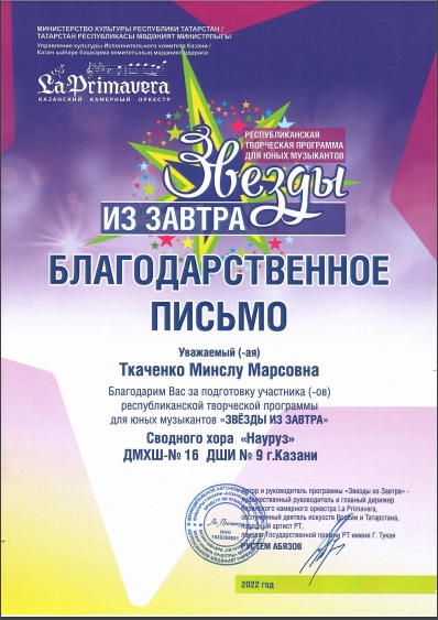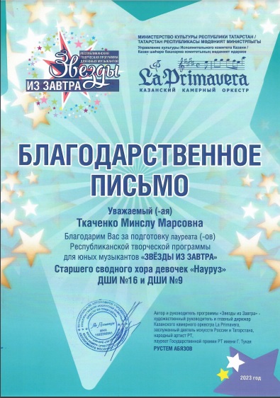 Ткаченко М.М. - благодарственное письмо за подготовку лауреатов "Звезды из завтра".jpg