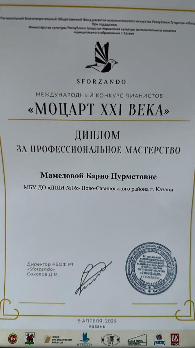 Мамедова Б.Н. - диплом за проф.мастерство "Моцарт 21 века"