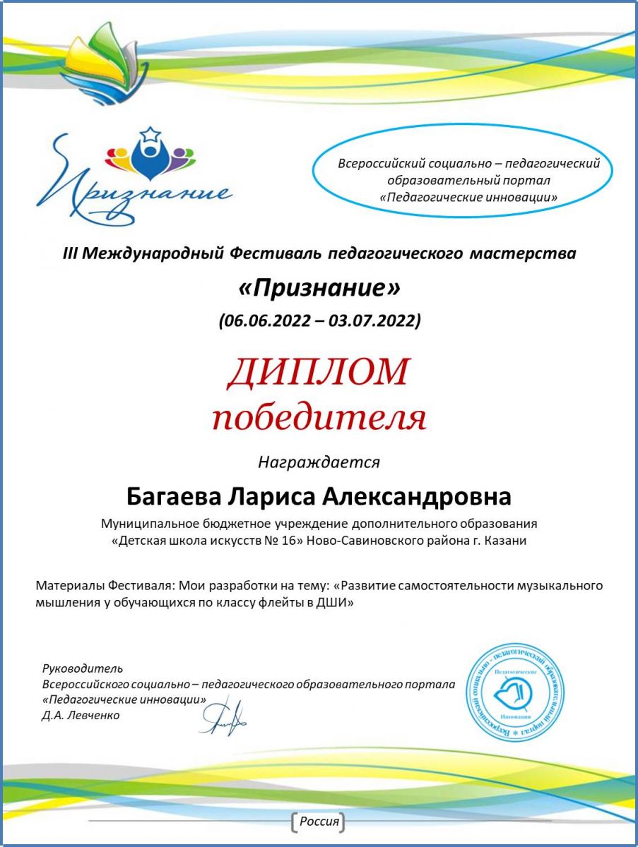 Багаева Л.А. - Победитель международного фестиваля "Признание".jpg
