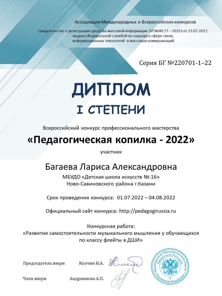 Багаева Л.А. - Диплом 1 степени "Педагогическая копилка".jpg