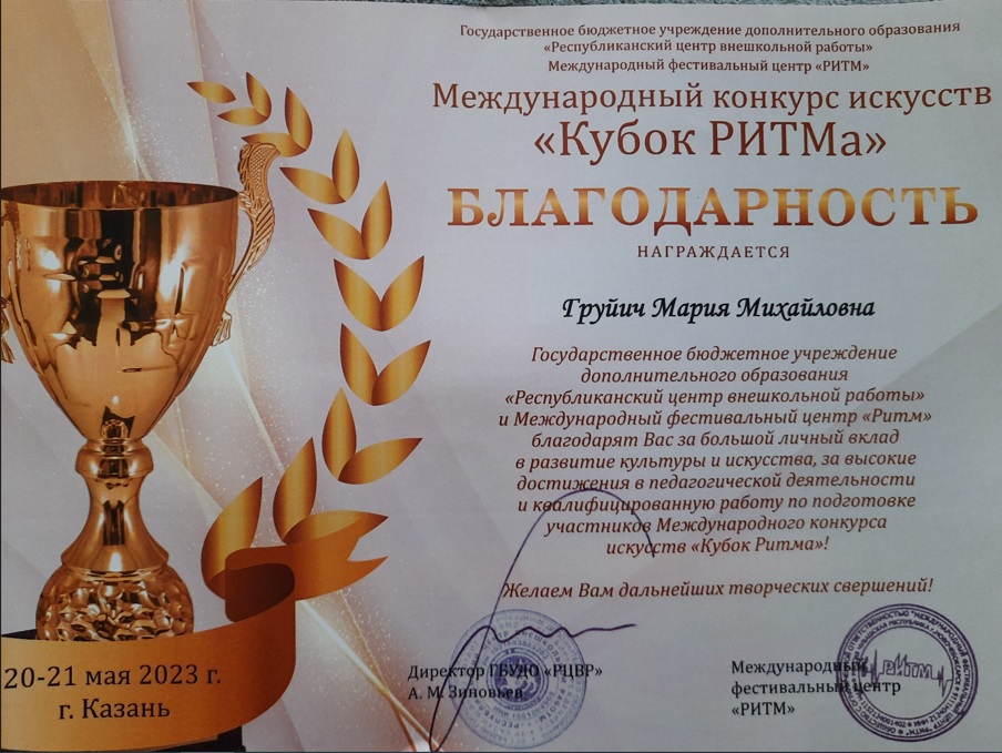 Груйич М М - Благодарность "Кубок ритма".jpg