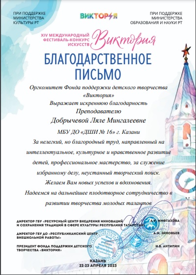 Добрычева Л.М. - Благодарственное письмо "Виктория".jpg