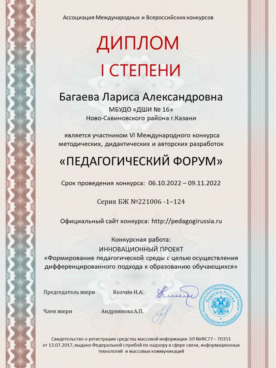 Багаева Л.А. - диплом 1 степени "Педагогический форум"