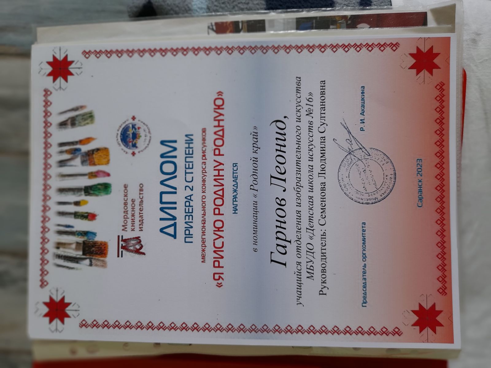 Гарнов Леонид - диплом призера 2 степени "Я рисую родину родную" (межрегион)