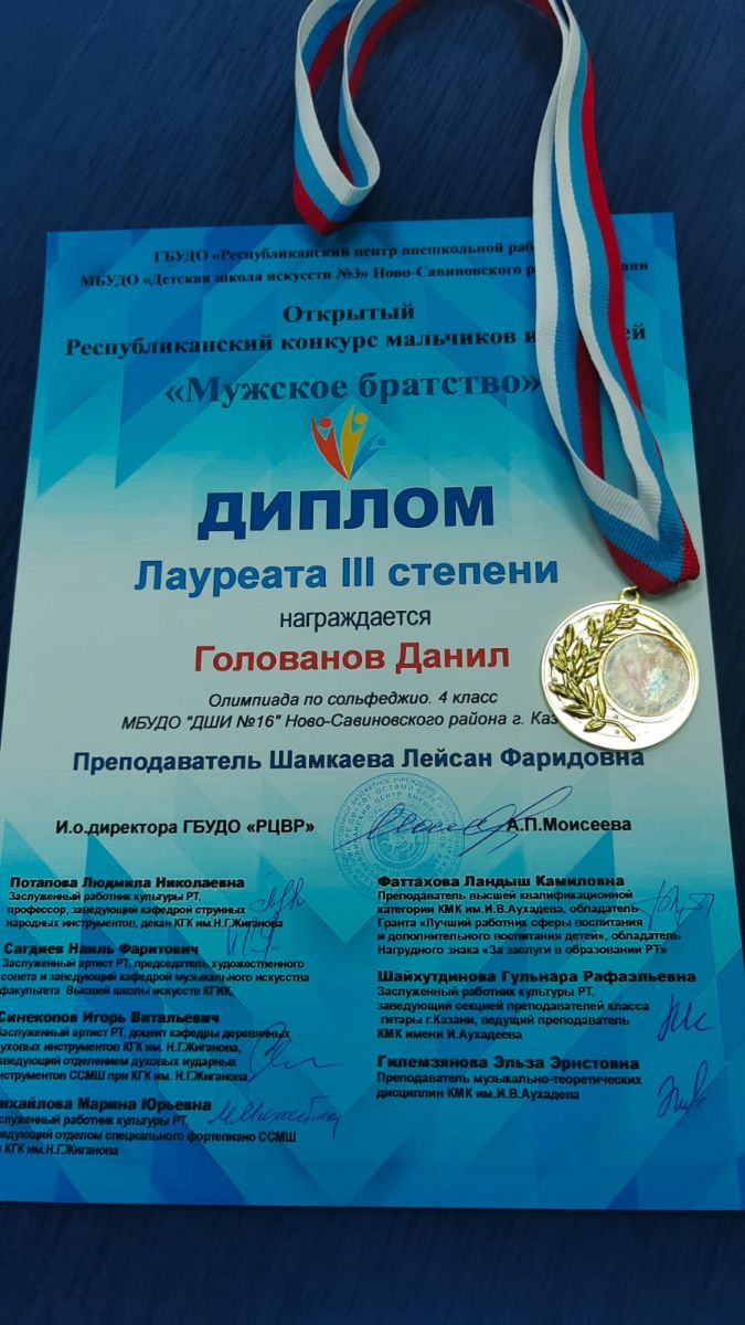 Голованов Данил - лауреат 3 степени Олимпиада "Мужское братство"