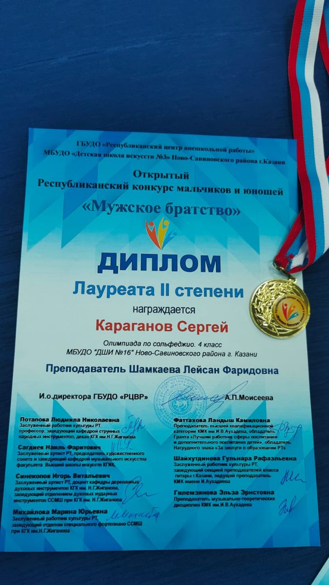 Караганов Сергей - лауреат 2 степени Олимпиада "Мужское братство"