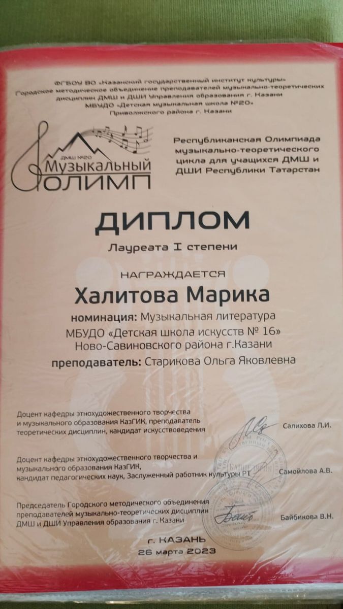 Халитова Марика - лауреат 1 степени "Музыкальный Олимп"