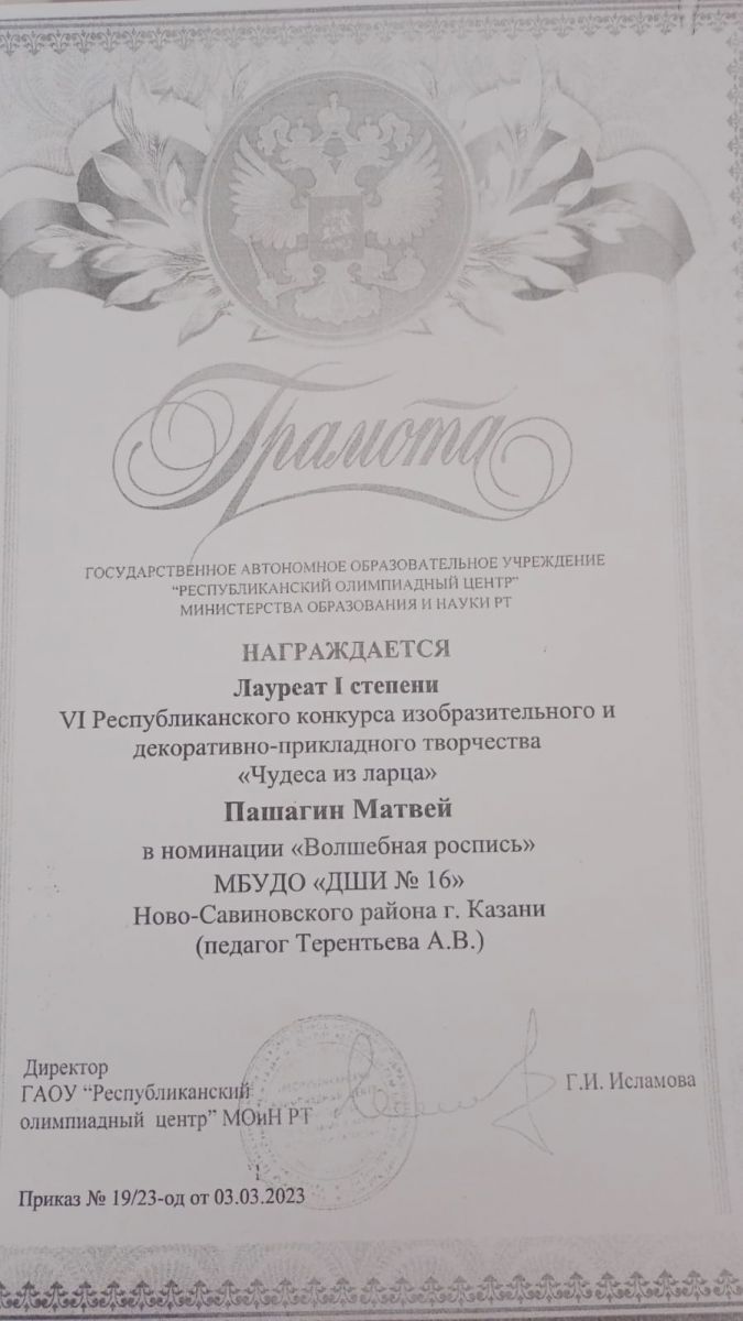 Пашагин Матвей - лауреат 1 степени "Чудеса из ларца"