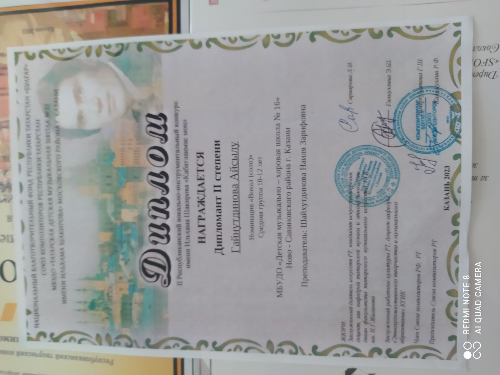 Гайнутдинова Айсылу - дипломант 2 степени "Кабатланмас мон"