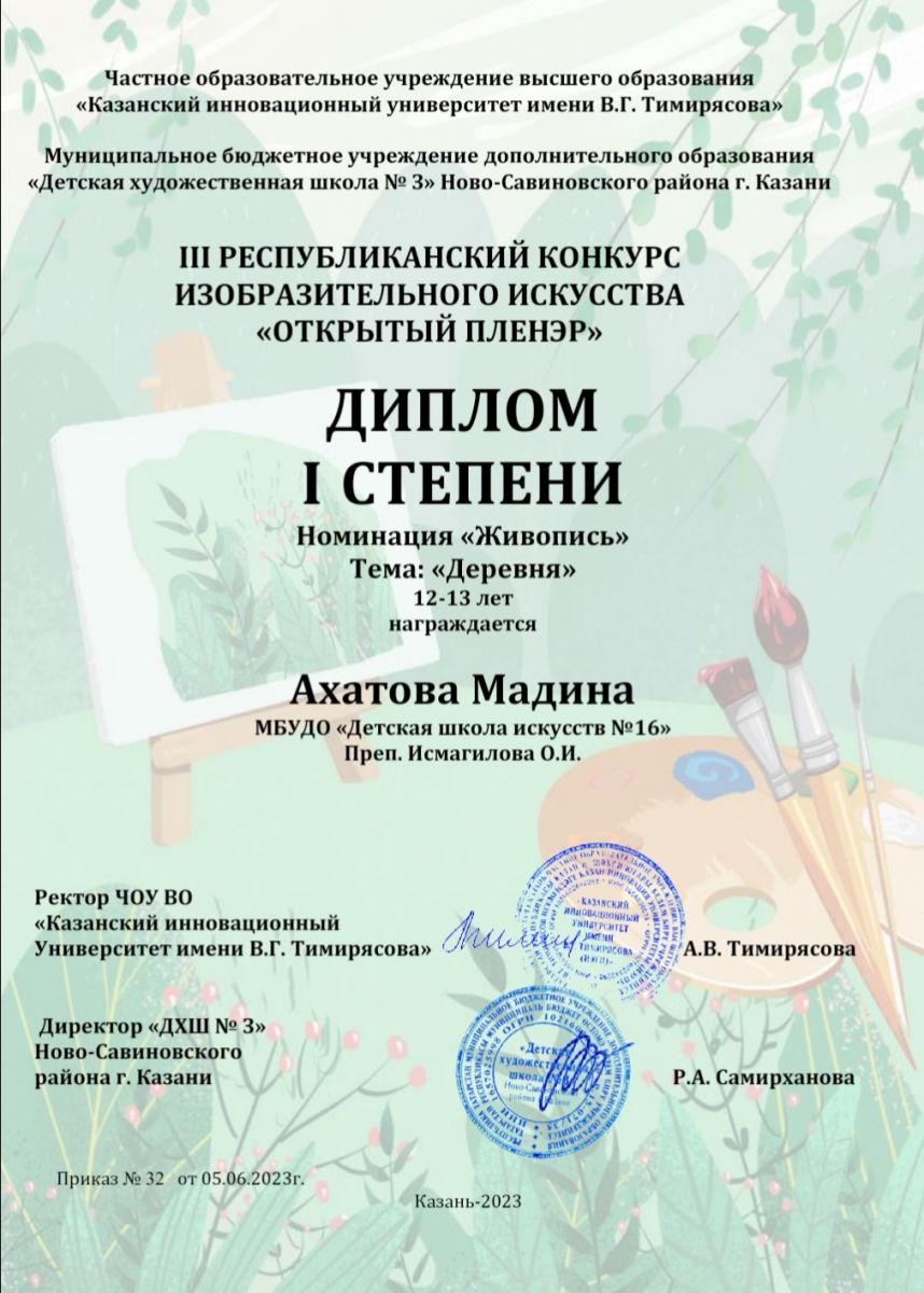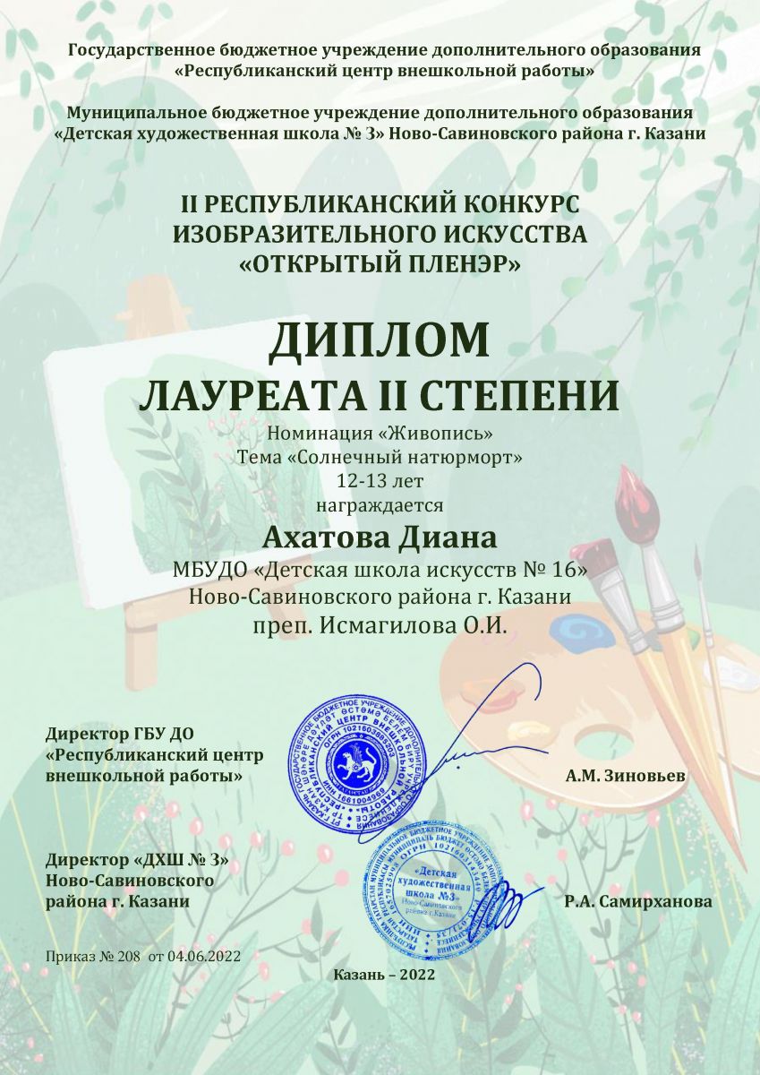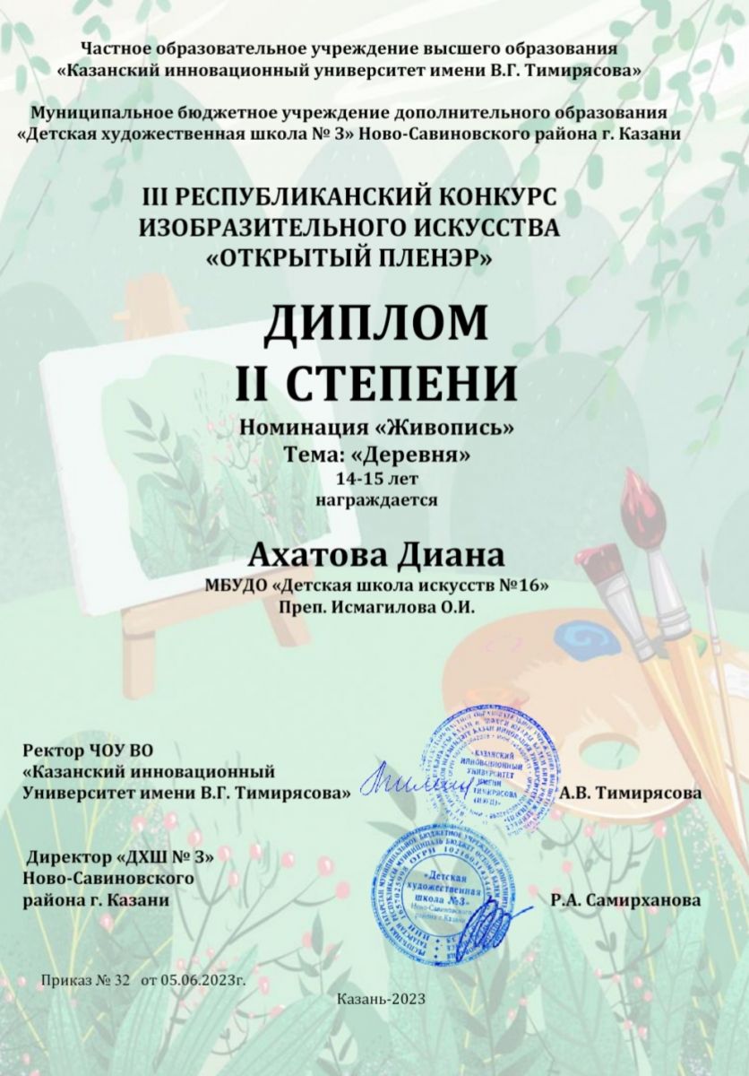 Ахатова Диана - диплом 2 степени "Открытый пленэр"