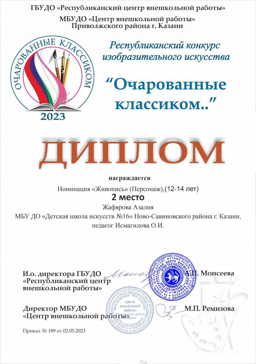 Жафярова Азалия - диплом 2 место "Очарованные классиком".jpg