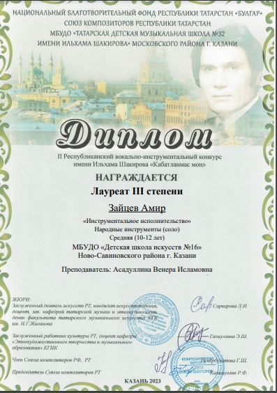Зайцев Амир - лауреат 3 степени конкурса имени Ильхама Шакирова "Кабатланмас мон".jpg