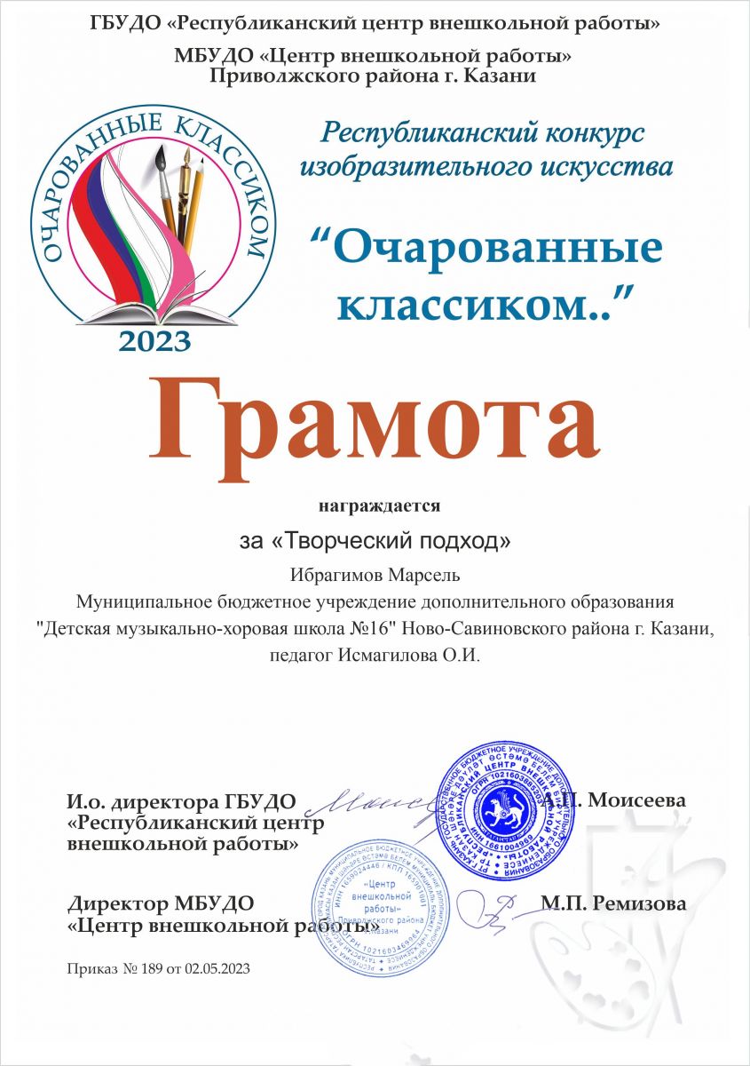 Ибрагимов Марсель - грамота за "Творческий подход" "Очарованные классиком".jpg