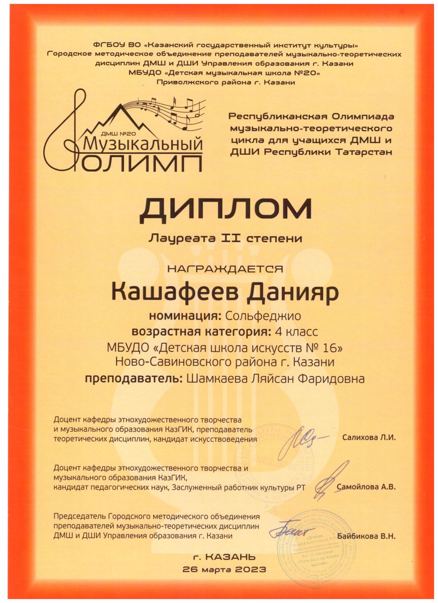 Кашафеев Данияр - лауреат II степени "Музыкальный Олимп"