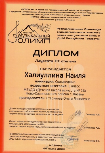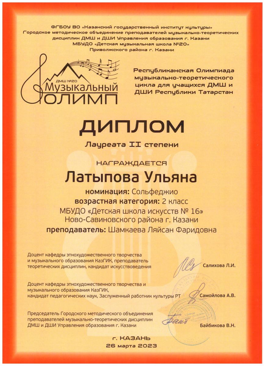 Латыпова Ульяна - лауреат II степени "Музыкальный Олимп"