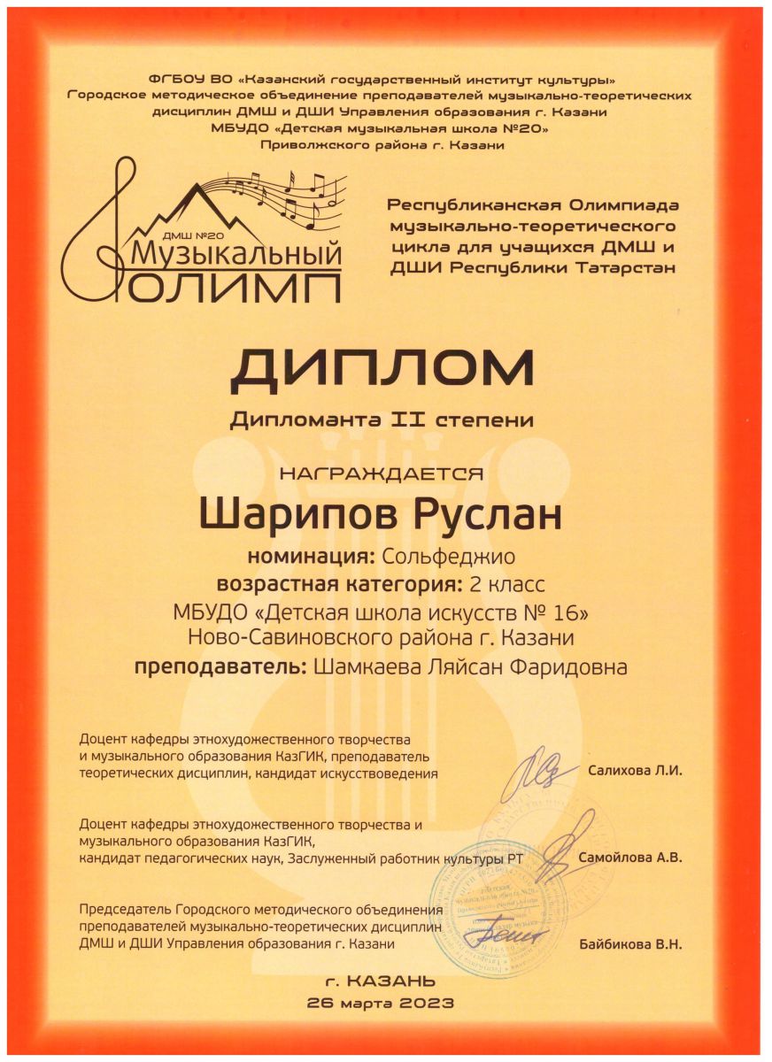 Шарипов Руслан - дипломант II степени "Музыкальный Олимп"
