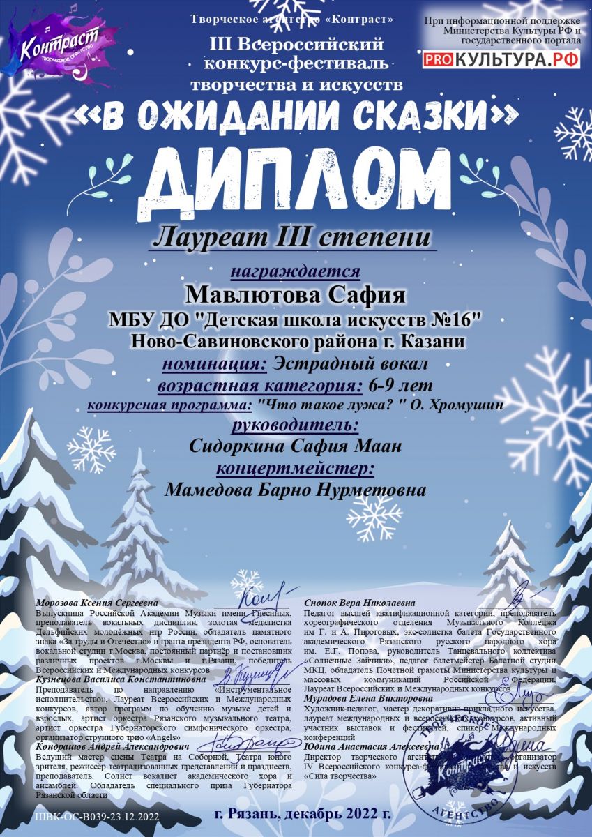 Мавлютова Сафия - Лауреат 3 степени "В ожидании сказки".jpeg
