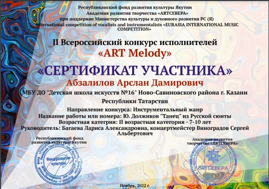 Абзалилов Арслан - Сертификат участника "Арт -мелоди".jpg