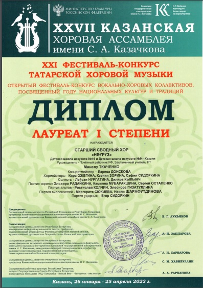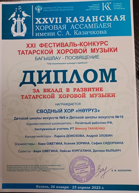хор "Науруз" - диплом за вклад в развитие "XXI фестиваль-конкурс татарской хоровой музыки".jpg