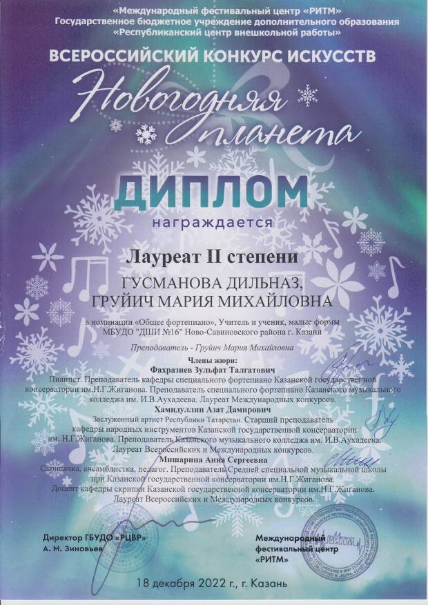 Гусманова Дильназ - Лауреат 2 степени "Новогодняя планета".jpg