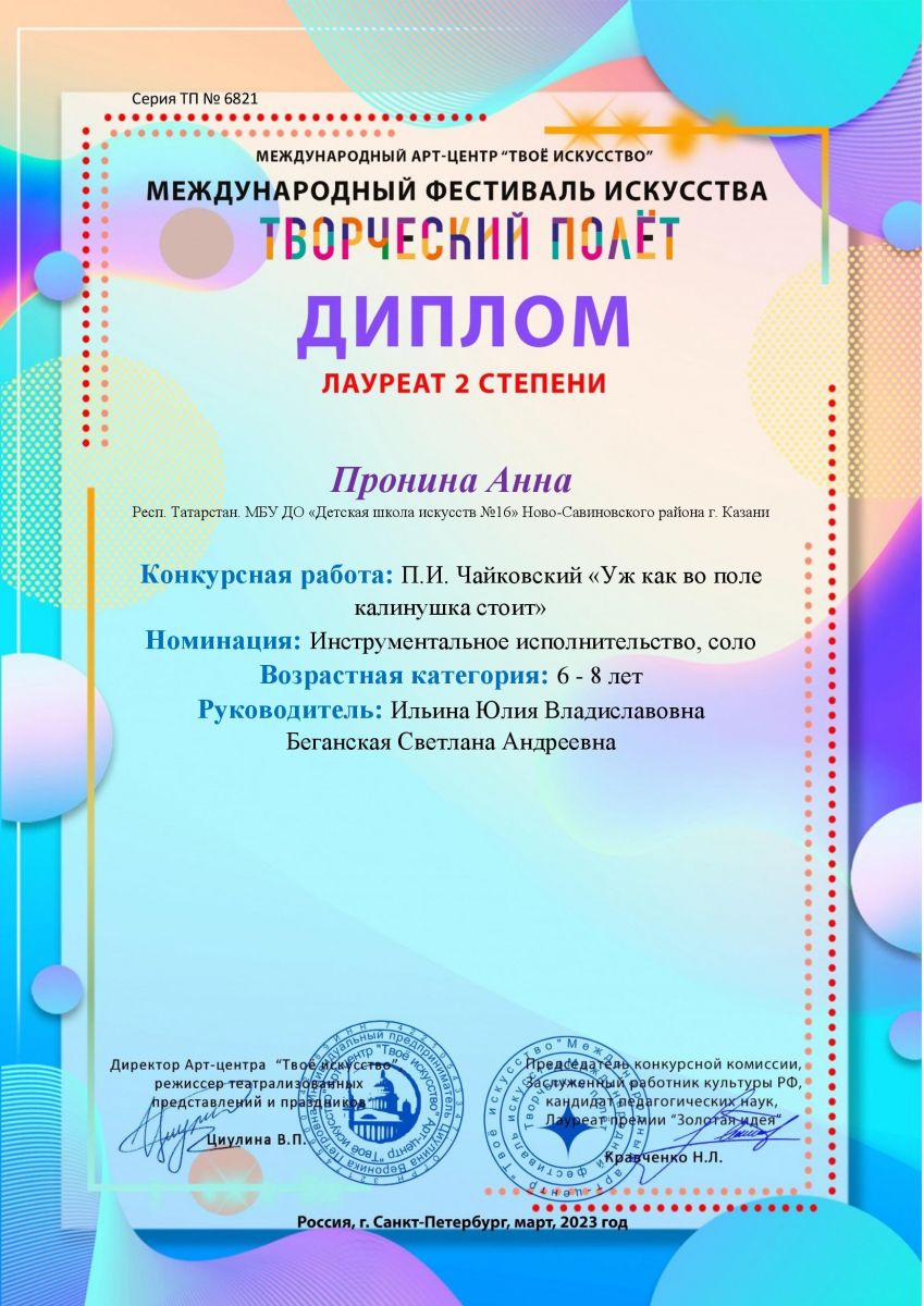 Пронина Анна - лауреат 2 степени "Творческий полет".jpg