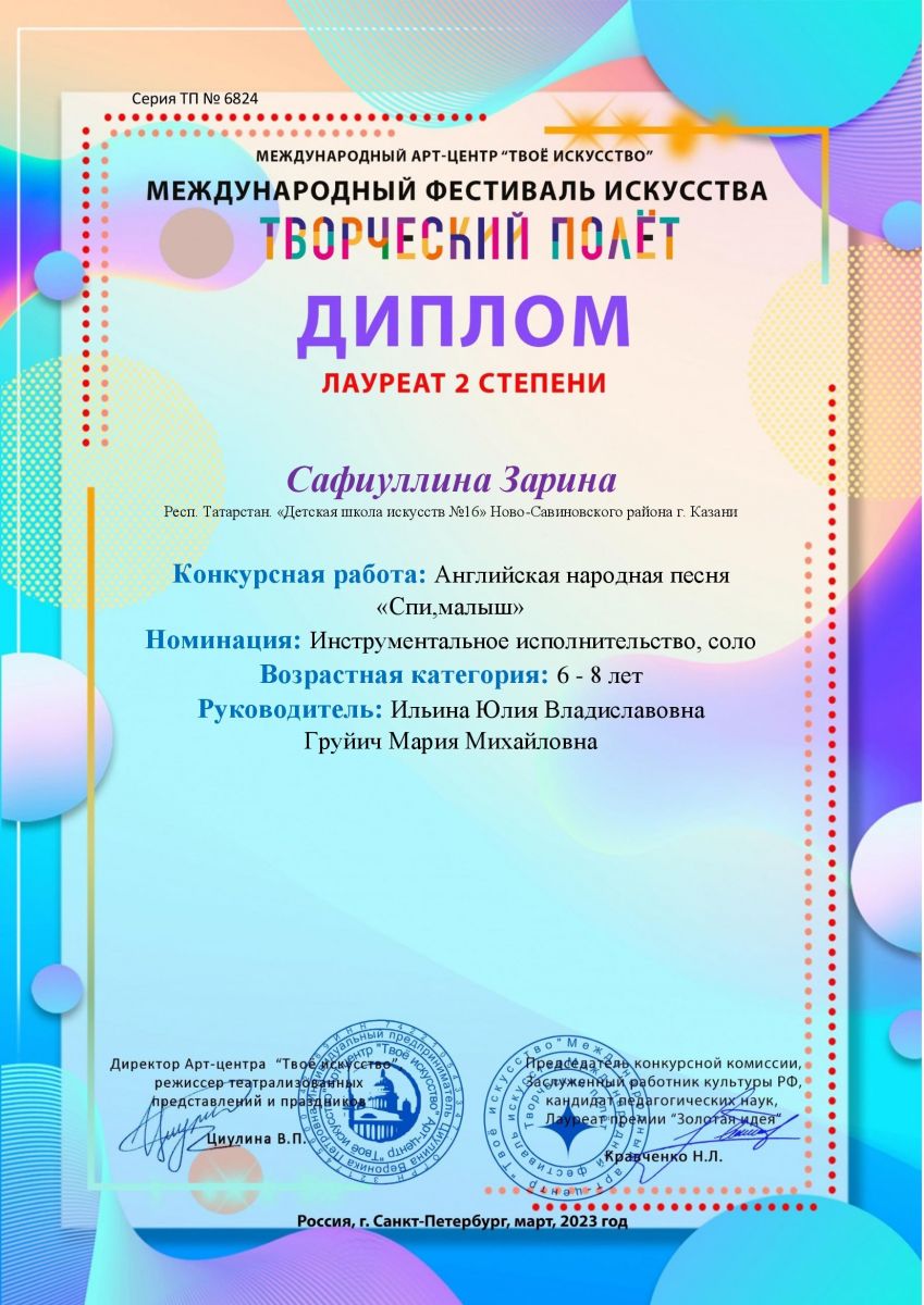 Сафиуллина Зарина - лауреат 2 степени "Творческий полет".jpg