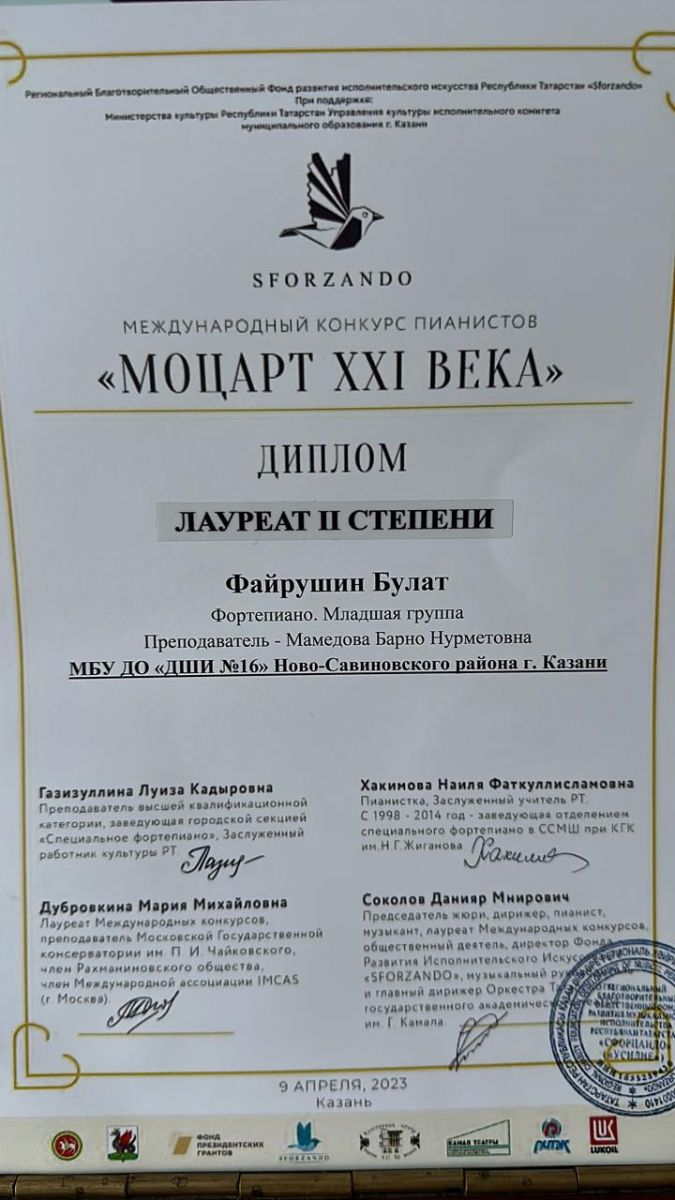 Файрушин Булат - лауреат 2 степени "Моцарт 21 века"